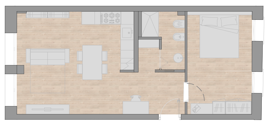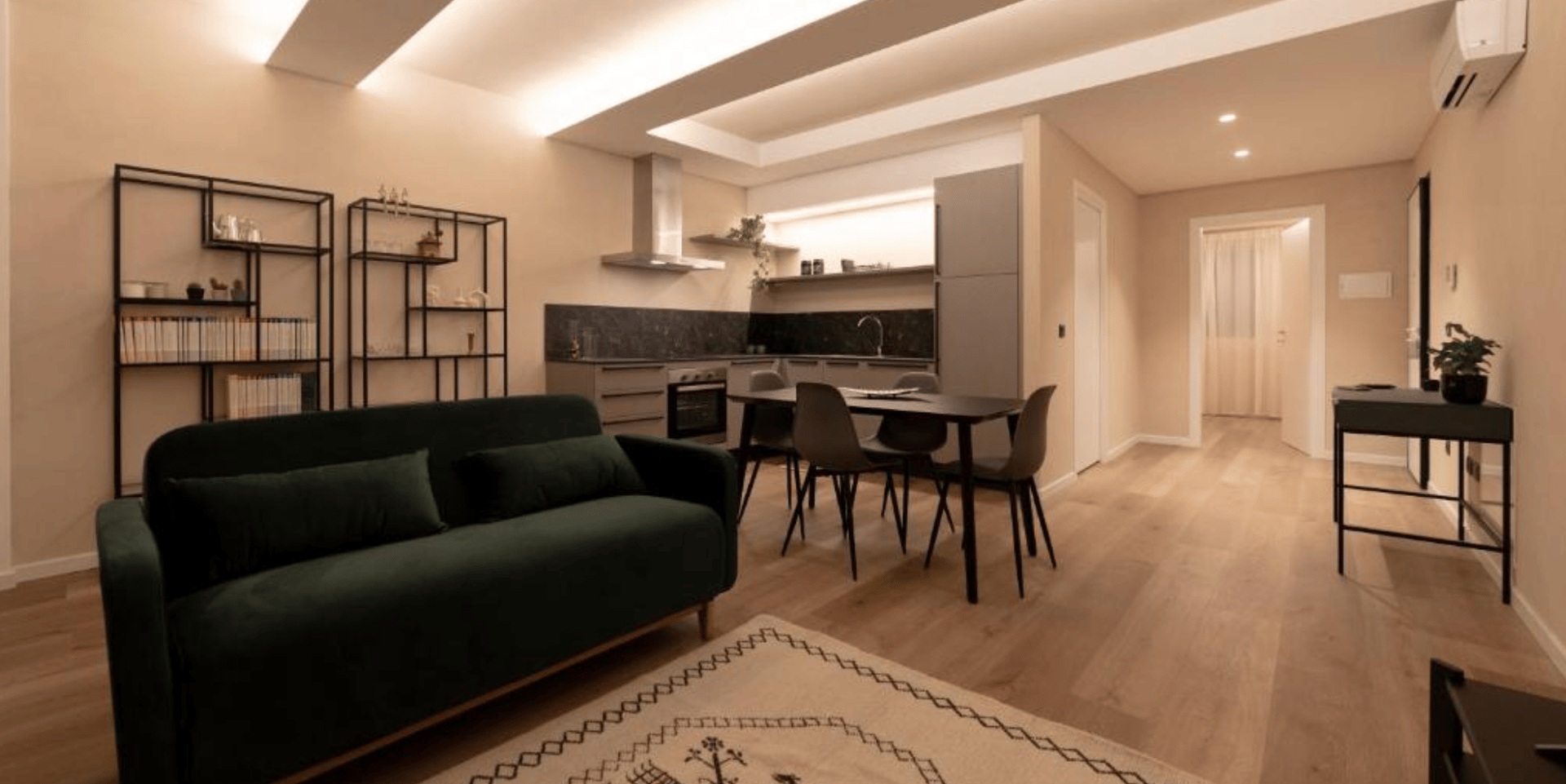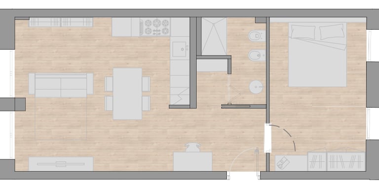 Questo bilocale è l’espressione della nostra visione di abitare contemporaneo. Situato sul lato della casa che un tempo ospitava i volumi di servizio, oggi è uno spazio fluido e luminoso che si affaccia direttamente sul giardino. Abbiamo scelto uno stile essenziale per dare respiro alla struttura lunga e stretta della casa, creando un ambiente dove ogni dettaglio è funzionale e raffinato.