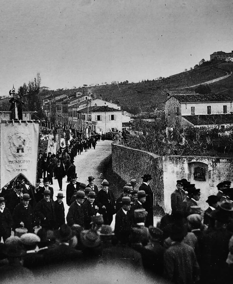 Una fotografia del 1914 custodisce il nostro segreto più caro: durante l’ultimo saluto al Senatore Gaspare Finali, la facciata della nostra casa appare fiera e immutata. Sotto le sue finestre, il Cesuola scorreva ancora libero, offrendo quei riflessi magici che i pittori come Giordano Severi cercavano di catturare sulla tela, incantati da una "Venezia romagnola" che oggi vive nei nostri ricordi.